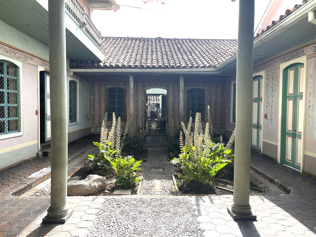 El gráfico que acompaña al texto muestra el Patio de la “Casa de las Palomas”, Sede del Instituto de Patrimonio Cultural, Dirección Zonal 6, Cuenca, calle Benigno Malo 6-40, entre Presidente Córdova y Juan Jaramillo.